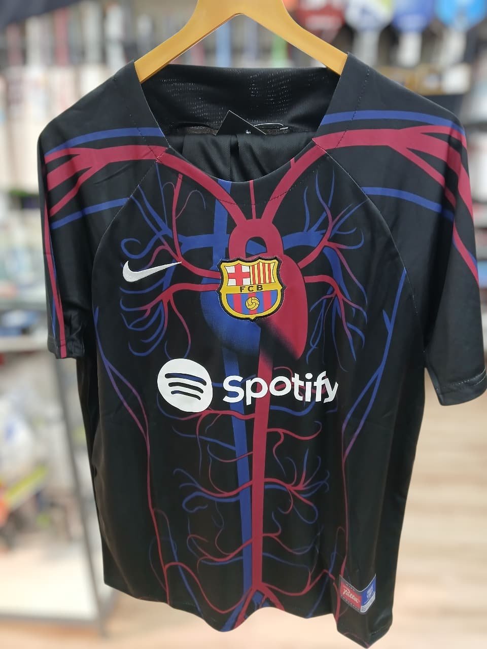 The Nike × Patta “Culers del Món” Pre-Match Jersey, a daring partnership between FC Barcelona, Nike, and Amsterdam-based streetwear brand Patta, will elevate your fan gear. This limited edition item, which was released in October 2023, combines the classic Blaugrana colors with urban design elements. It is emphasized by a heart-and-vein motif that represents the flow of Barça blood through “Culers of the world.”