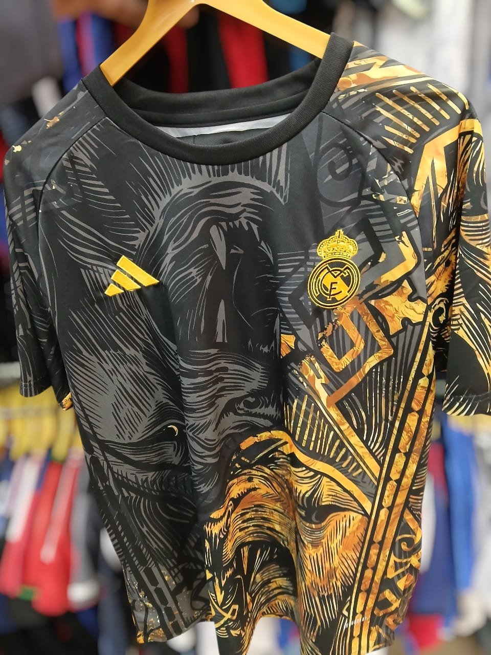With the Real Madrid Golden Lion Edition Jersey Kit 2024–2025, you’ll be in a class by yourself. With its sleek base design accentuated with gold accents and a unique lion-inspired motif signifying strength and heritage, this limited-edition release combines style and homage. Made from performance textiles, it offers comfort and breathability whether you’re training hard or just watching from the stands. Real Madrid’s tradition of excellence is reflected in the club crest, official branding, and gold highlights. This limited-edition kit is more than just a jersey for collectors and fans alike; it’s a declaration of class, ambition, and loyalty.