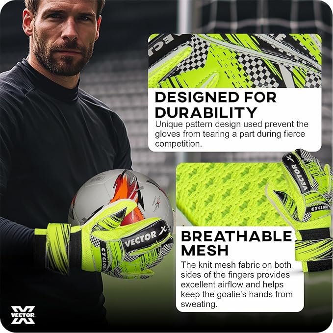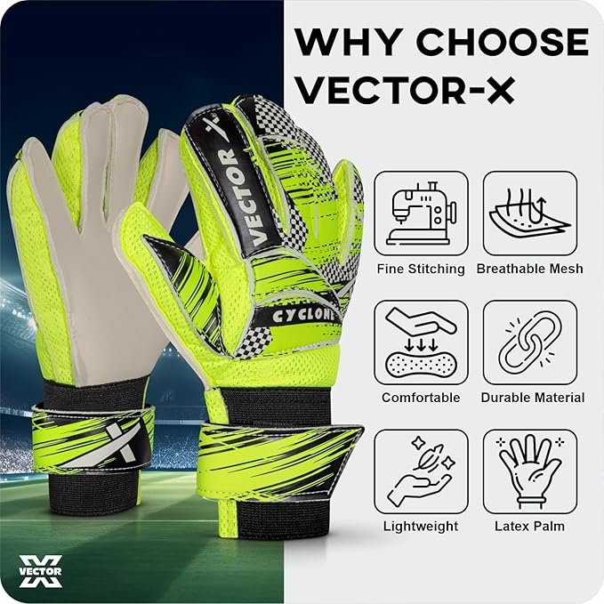 Vector X Cyclone Goalkeeping Gloves deliver superior grip, protection, and comfort—helping keepers stay confident between the posts.
